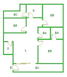 ▲ E(入口)=entrance BR (洋室)=Bedroom BA (浴室)=Bathroom