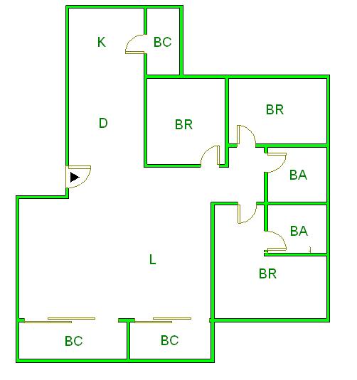 BC (ベランダ)=Balcony JR (和室)=Japaneseroom K (台所)=Kitchen