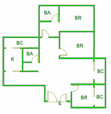 ▲ E(入口)=entrance BR (洋室)=Bedroom BA (浴室)=Bathroom