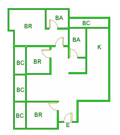 ▲ E(入口)=entrance BR (洋室)=Bedroom BA (浴室)=Bathroom