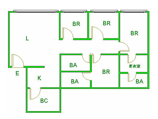▲ E(入口)=entrance BR (洋室)=Bedroom BA (浴室)=Bathroom