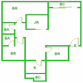 BC (ベランダ)=Balcony JR (和室)=Japaneseroom K (台所)=Kitchen