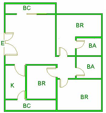 ▲ E(入口)=entrance BR (洋室)=Bedroom BA (浴室)=Bathroom