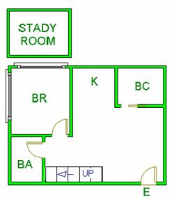▲ E(入口)=entrance BR (洋室)=Bedroom BA (浴室)=Bathroom