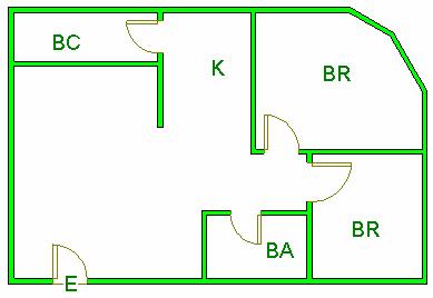 ▲ E(入口)=entrance BR (洋室)=Bedroom BA (浴室)=Bathroom