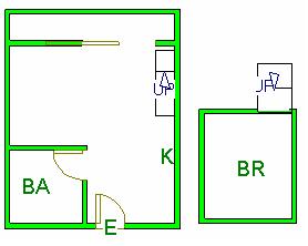 ▲ E(入口)=entrance BR (洋室)=Bedroom BA (浴室)=Bathroom