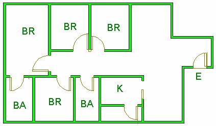 ▲ E(入口)=entrance BR (洋室)=Bedroom BA (浴室)=Bathroom