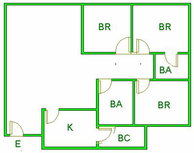 ▲ E(入口)=entrance BR (洋室)=Bedroom BA (浴室)=Bathroom