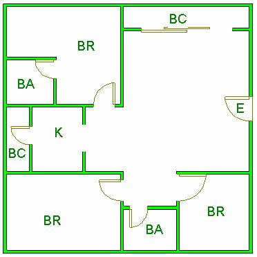 ▲ E(入口)=entrance BR (洋室)=Bedroom BA (浴室)=Bathroom
