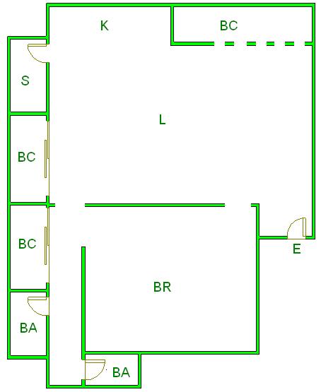 ▲ E(入口)=entrance BR (洋室)=Bedroom BA (浴室)=Bathroom