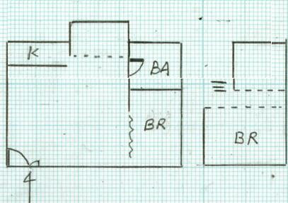 ▲ E(入口)=entrance BR (洋室)=Bedroom BA (浴室)=Bathroom
