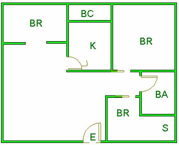 ▲ E(入口)=entrance BR (洋室)=Bedroom BA (浴室)=Bathroom