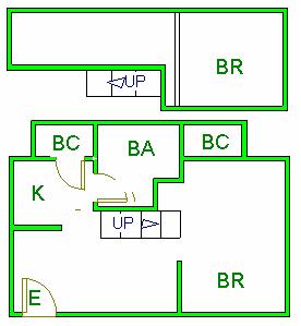 ▲ E(入口)=entrance BR (洋室)=Bedroom BA (浴室)=Bathroom