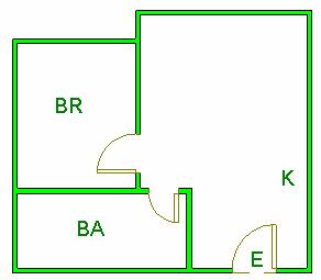 ▲ E(入口)=entrance BR (洋室)=Bedroom BA (浴室)=Bathroom
