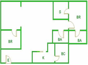▲ E(入口)=entrance BR (洋室)=Bedroom BA (浴室)=Bathroom