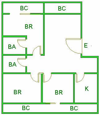 ▲ E(入口)=entrance BR (洋室)=Bedroom BA (浴室)=Bathroom