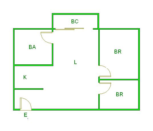 ▲ E(入口)=entrance BR (洋室)=Bedroom BA (浴室)=Bathroom
