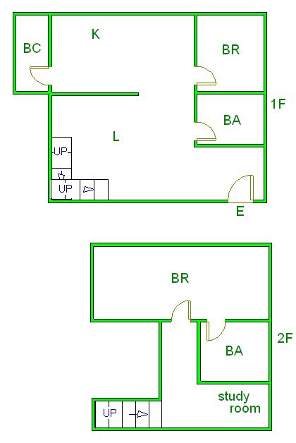 ▲ E(入口)=entrance BR (洋室)=Bedroom BA (浴室)=Bathroom