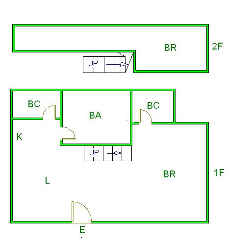 ▲ E(入口)=entrance BR (洋室)=Bedroom BA (浴室)=Bathroom