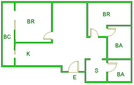 ▲ E(入口)=entrance BR (洋室)=Bedroom BA (浴室)=Bathroom
