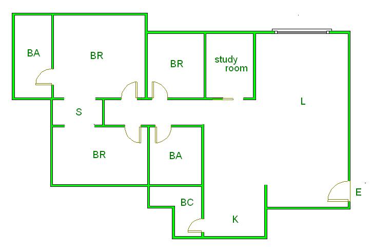 ▲ E(入口)=entrance BR (洋室)=Bedroom BA (浴室)=Bathroom