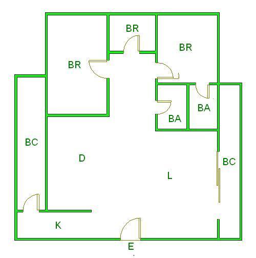 ▲ E(入口)=entrance BR (洋室)=Bedroom BA (浴室)=Bathroom