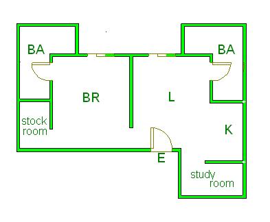 ▲ E(入口)=entrance BR (洋室)=Bedroom BA (浴室)=Bathroom