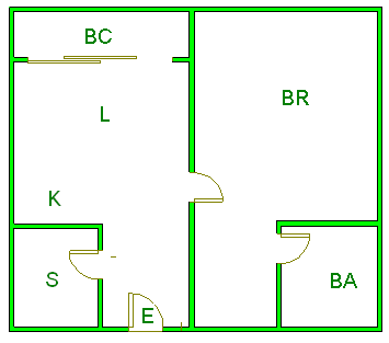 ▲ E(入口)=entrance BR (洋室)=Bedroom BA (浴室)=Bathroom