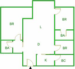 ▲ E(入口)=entrance BR (洋室)=Bedroom BA (浴室)=Bathroom
