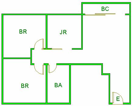 ▲ E(入口)=entrance BR (洋室)=Bedroom BA (浴室)=Bathroom