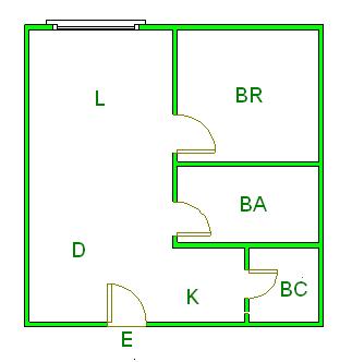 ▲ E(入口)=entrance BR (洋室)=Bedroom BA (浴室)=Bathroom