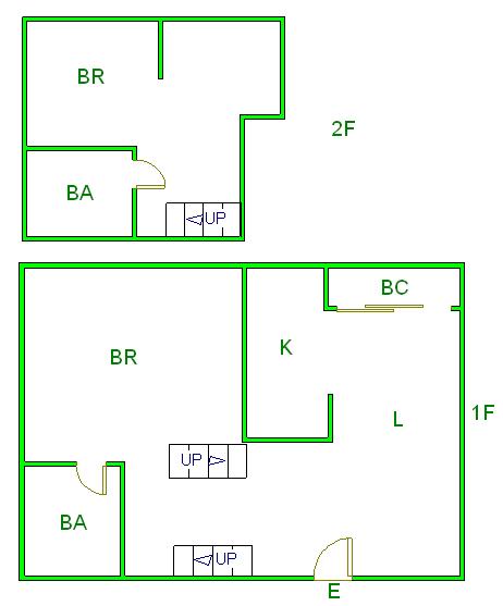 ▲ E(入口)=entrance BR (洋室)=Bedroom BA (浴室)=Bathroom