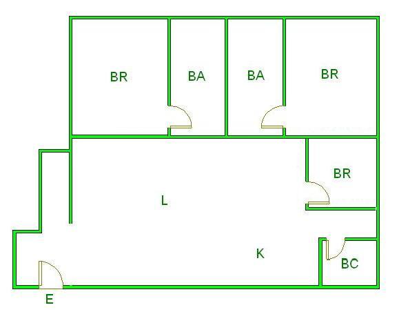 ▲ E(入口)=entrance BR (洋室)=Bedroom BA (浴室)=Bathroom