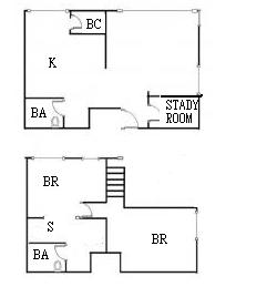 ▲ E(入口)=entrance BR (洋室)=Bedroom BA (浴室)=Bathroom