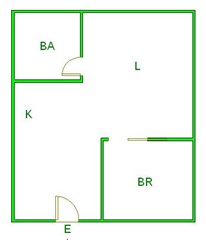 ▲ E(入口)=entrance BR (洋室)=Bedroom BA (浴室)=Bathroom
