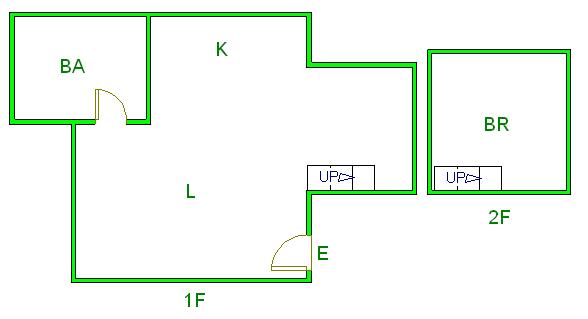 ▲ E(入口)=entrance BR (洋室)=Bedroom BA (浴室)=Bathroom
