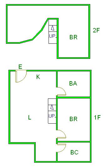 ▲ E(入口)=entrance BR (洋室)=Bedroom BA (浴室)=Bathroom