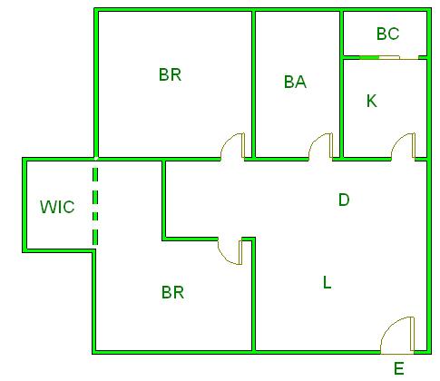 ▲ E(入口)=entrance BR (洋室)=Bedroom BA (浴室)=Bathroom