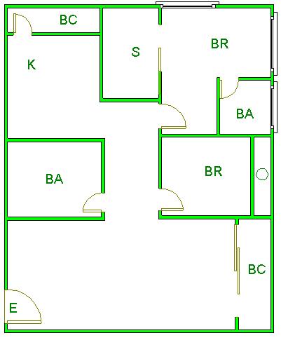 ▲ E(入口)=entrance BR (洋室)=Bedroom BA (浴室)=Bathroom