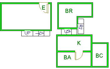 ▲ E(入口)=entrance BR (洋室)=Bedroom BA (浴室)=Bathroom