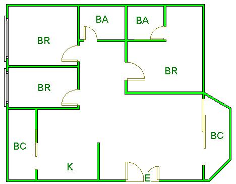 ▲ E(入口)=entrance BR (洋室)=Bedroom BA (浴室)=Bathroom
