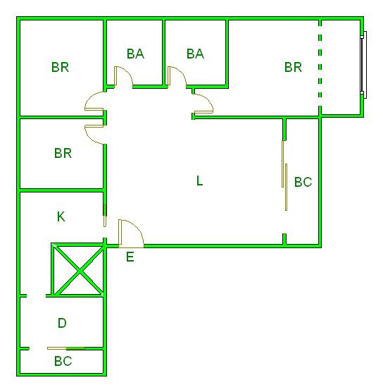 ▲ E(入口)=entrance BR (洋室)=Bedroom BA (浴室)=Bathroom