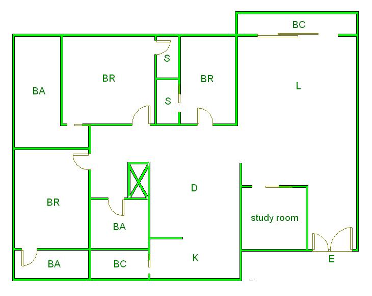 ▲ E(入口)=entrance BR (洋室)=Bedroom BA (浴室)=Bathroom