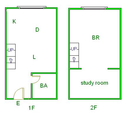 ▲ E(入口)=entrance BR (洋室)=Bedroom BA (浴室)=Bathroom