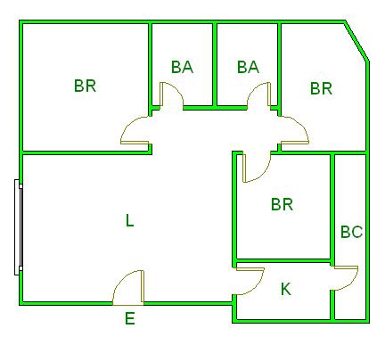 ▲ E(入口)=entrance BR (洋室)=Bedroom BA (浴室)=Bathroom