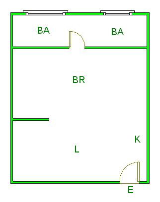▲ E(入口)=entrance BR (洋室)=Bedroom BA (浴室)=Bathroom