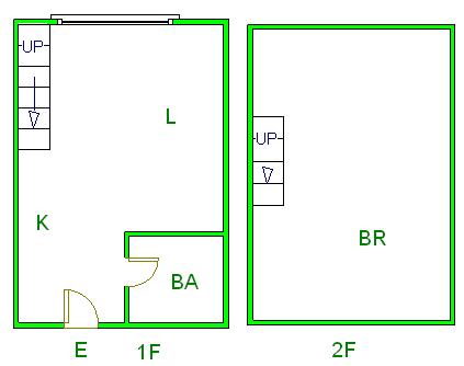 ▲ E(入口)=entrance BR (洋室)=Bedroom BA (浴室)=Bathroom