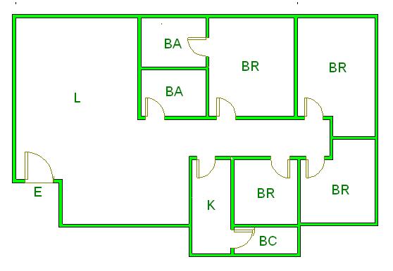 ▲ E(入口)=entrance BR (洋室)=Bedroom BA (浴室)=Bathroom