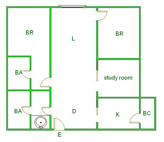 ▲ E(入口)=entrance BR (洋室)=Bedroom BA (浴室)=Bathroom