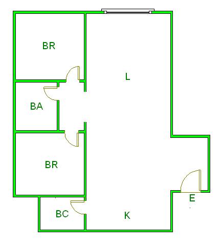 ▲ E(入口)=entrance BR (洋室)=Bedroom BA (浴室)=Bathroom